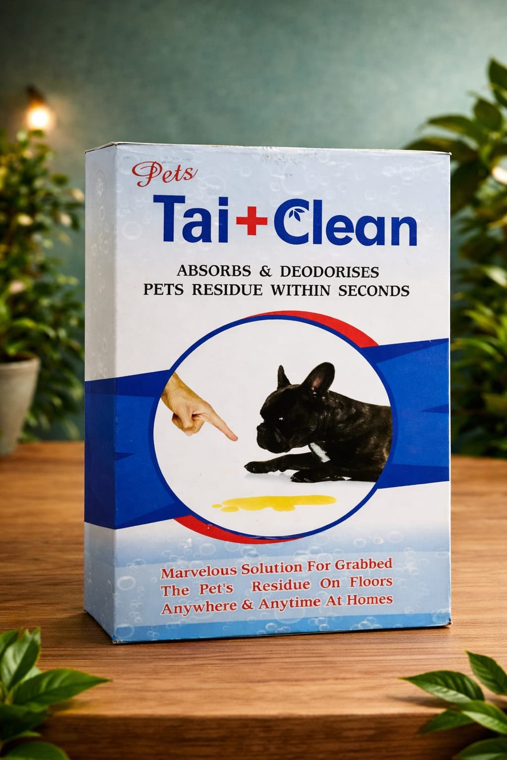 Tai+Clean is a fast-acting pet residue absorbing powder that instantly soaks pet pee or spills and removes bad odour. Suitable for all floor types, non-toxic, and perfect for daily use.